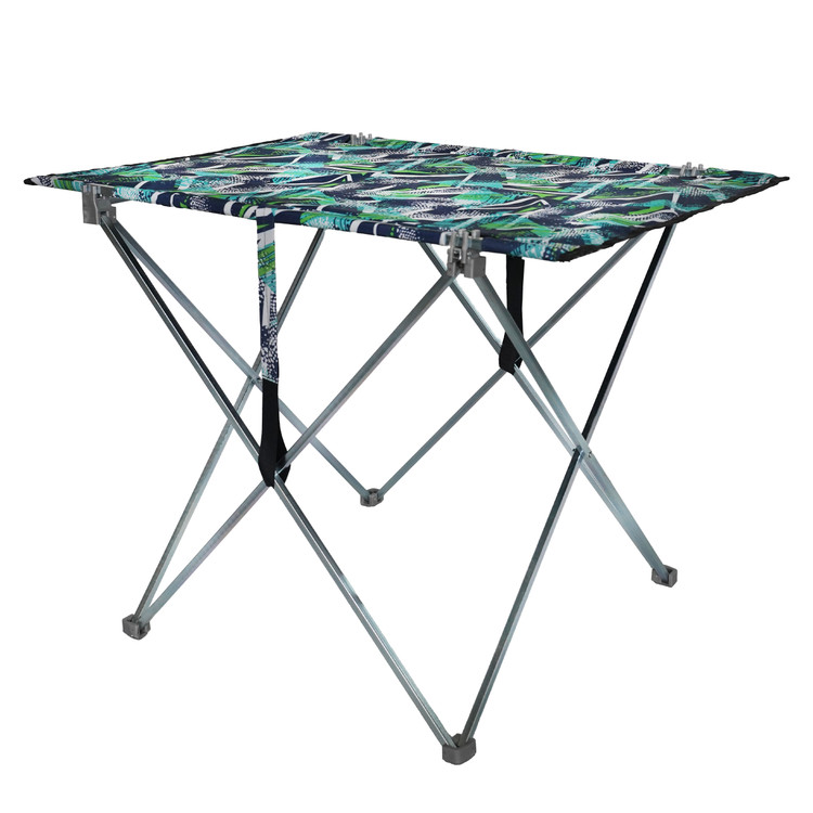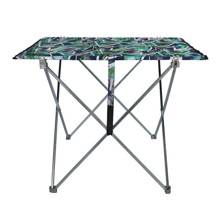 جنس پایه از فلز با ضخامت 0/6 با آبکاری گالوانیزه که مانع جذب رطوبت میشود/همراه با قطعات اتصالی از پلاستیک سخت فشرده/پارچه سومیت و شمعی ضخیم ضد آب/با بکارگیری مفتول آهنی مسوار زیر صفحه میز قابلیت تحمل قرارگیری اجسام را روی سطح میز بدون جمع شدن ایجاد میکند/ابعاد باز شده میز 60*55*76/ابعاد صفحه میز55*76/ابعاد بسته شده میز 10*15*75/وزن 2 کیلو گرم