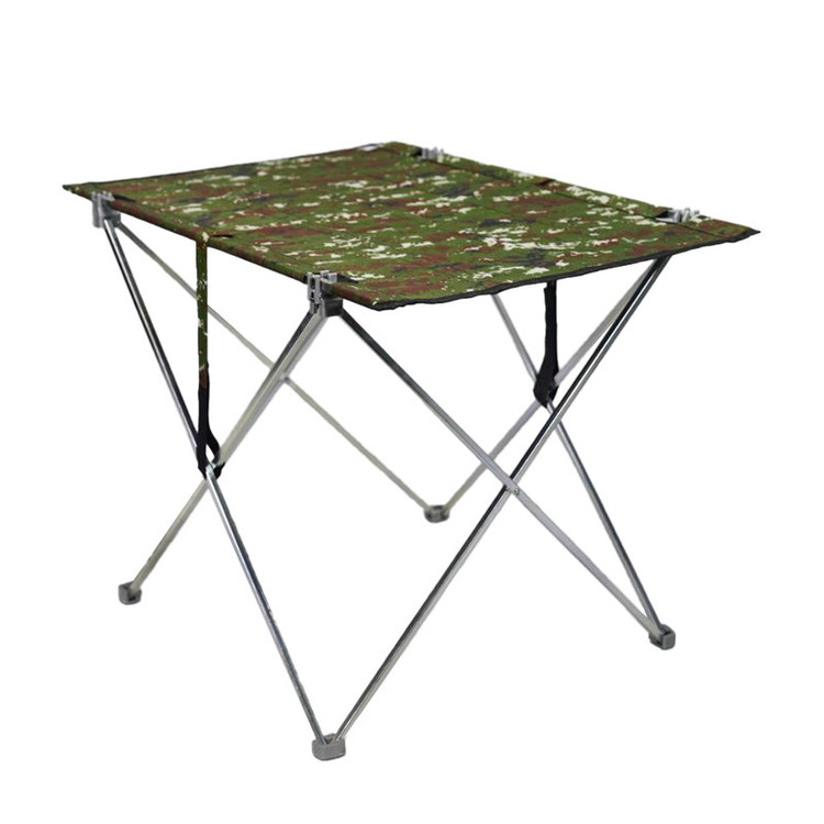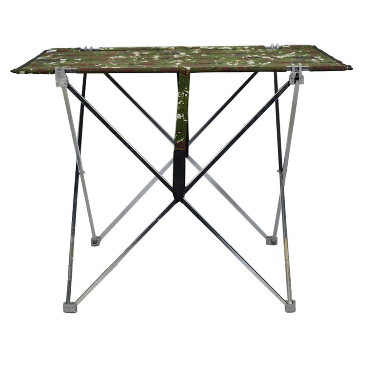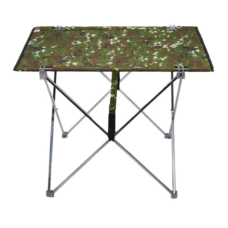 جنس پایه از فلز با ضخامت 0/6 با آبکاری گالوانیزه که مانع جذب رطوبت میشود/همراه با قطعات اتصالی از پلاستیک فشرده نشکن/پارچه جودان و شمعی ضخیم ضد آب/با به کارگیری مفتول آهنی مسوار زیر صفحه میز قابلیت تحمل قرارگیری اجسام را روی سطح میز بدون جمع شدن ایجاد میکند/ابعاد باز شده میز55*60*76/ابعاد صفحه میز 55*76/ابعاد بسته شده میز 10*15*75/ وزن 2000